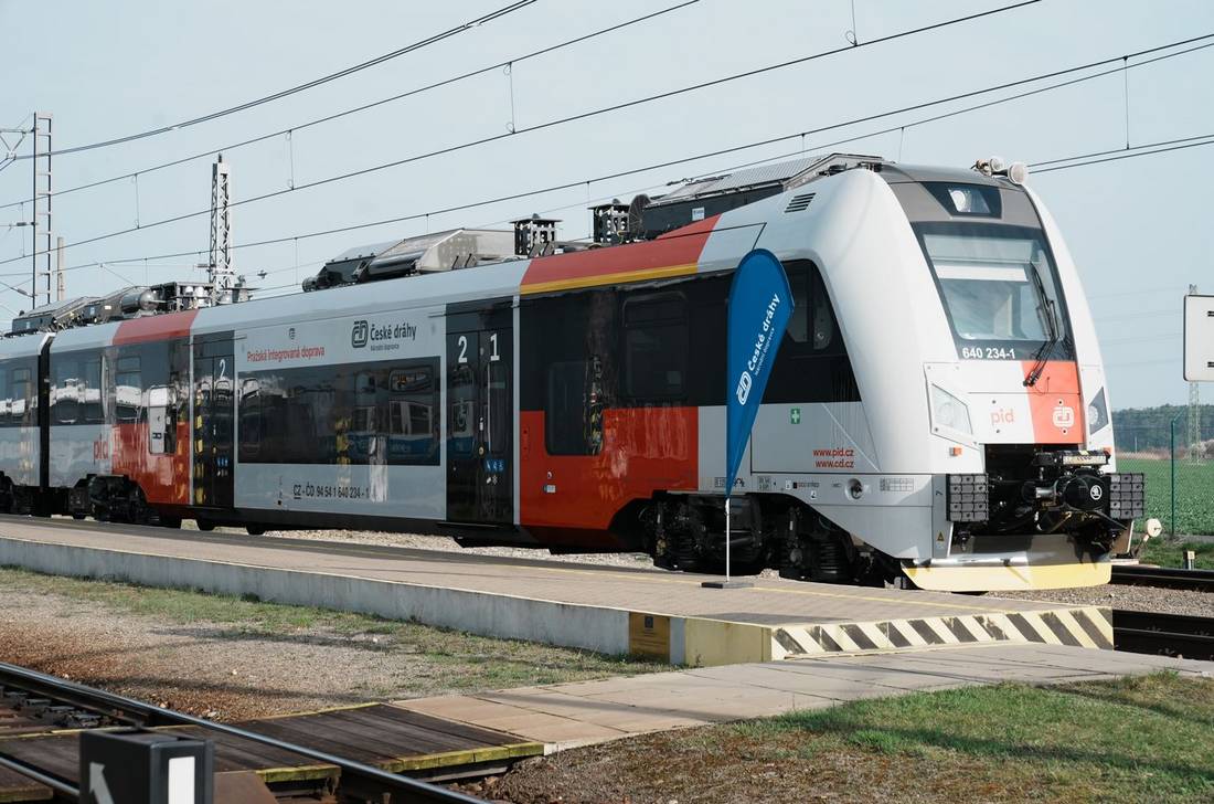 Zástupci Středočeského kraje si dnes prohlédli jednu z dokončených elektrických jednotek řady 640.2 RegioPanter, která bude obsluhovat příměstské linky S ve Středočeském kraji a Praze.
